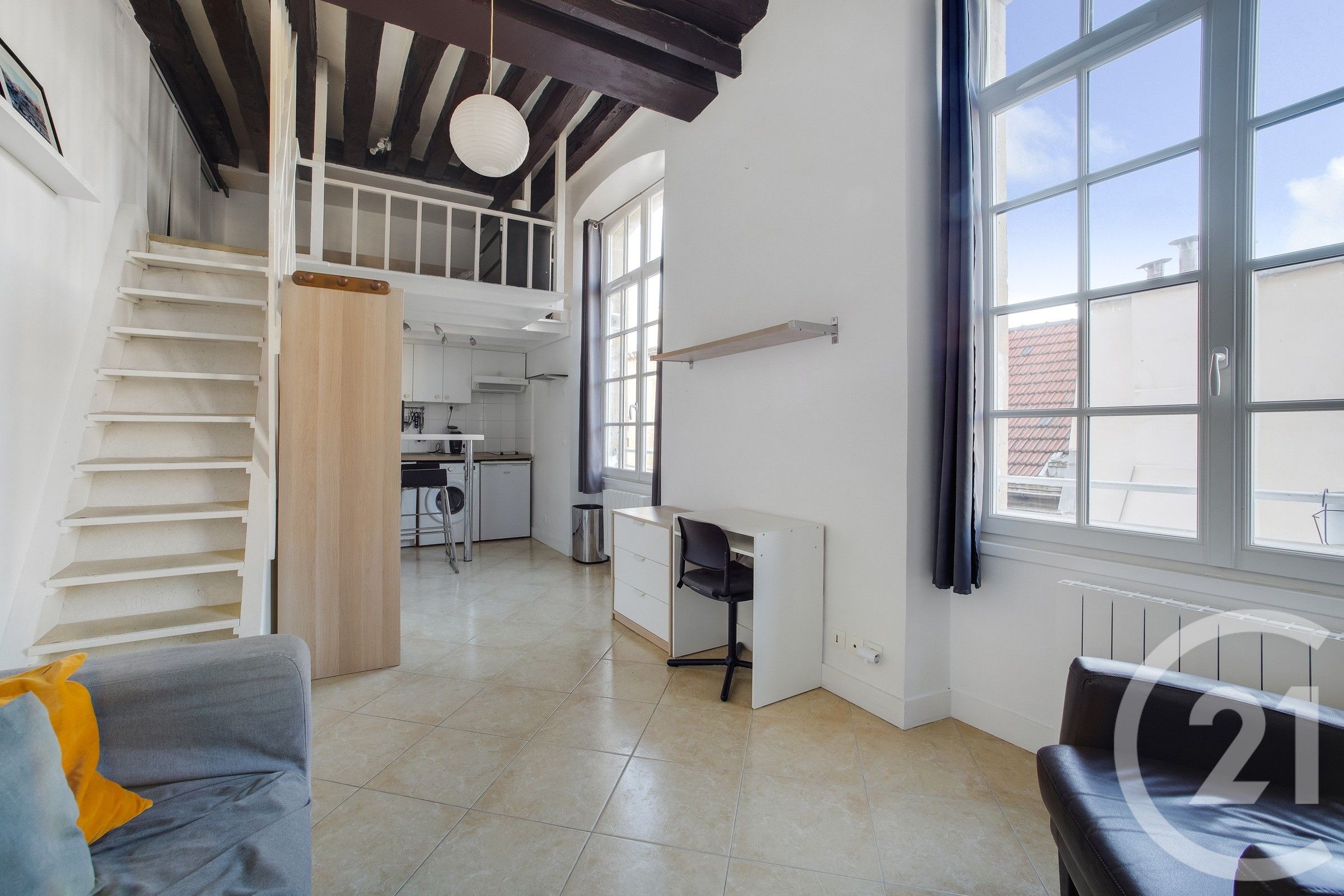 Notre agence Century 21 Bolivar Jourdain vous propose en exclusivité ce charmant studio d'une surface totale d'environ 33 m² dont une mezzanine d'environ 10 m² ! Il est situé au sein d'un magnifique immeuble ancien avec ascenseur. Il bénéficie d'un calme rare, d'une belle lumière et d'une vue dégagée sur les toits. Il comprend une pièce de vie avec coin cuisine, une salle d'eau, un wc séparé et une mezzanine servant de coin nuit. Il est idéal pour un premier achat ou un pied à terre, notamment, lieu à découvrir..